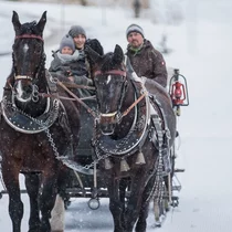 Gliding through an idyllic winter landscape - snuggled up in the back of a horse-drawn sleigh.
