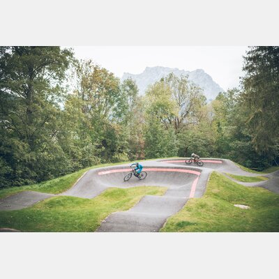 Zwei Biker fahren im Pumptrack | © Tiroler Zugspitz Arena/C. Jorda
