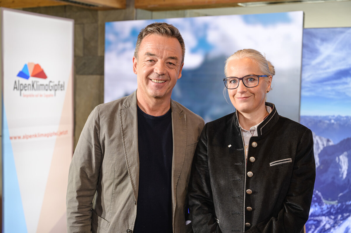 The representatives of the Advisory Board of the Alpine Climate Summit, university professor Ralf Roth and glaciologist Andrea Fischer. © Tiroler Zugspitz Arena / Franz Oss