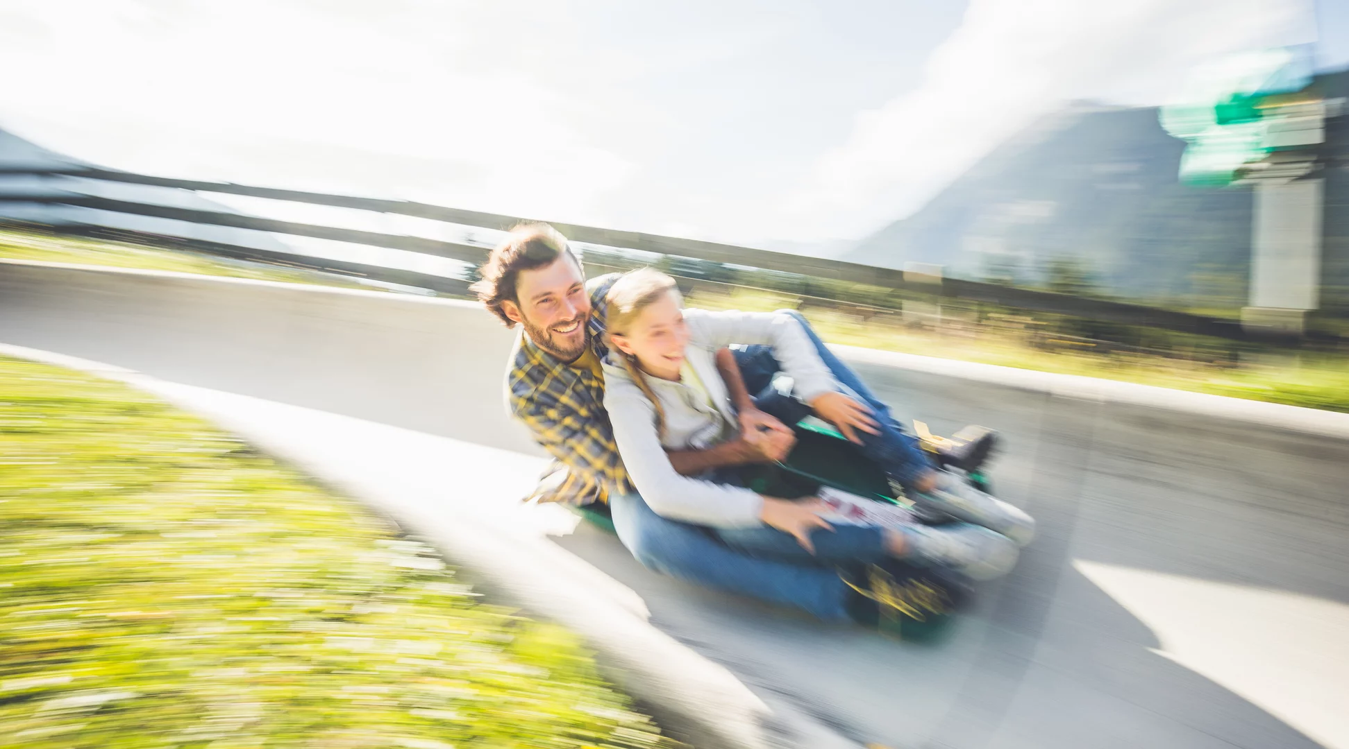 Full speed ahead! Seeing the summer toboggan run in Biberwier will already get the adrenaline flowing. On summer holiday, little and grown-up guests can swoosh down the 1.3-kilometre run – across a difference in altitude of 200 metres – while admiring the breathtaking mountain scenery on the Tyrolean side of the Zugspitze.